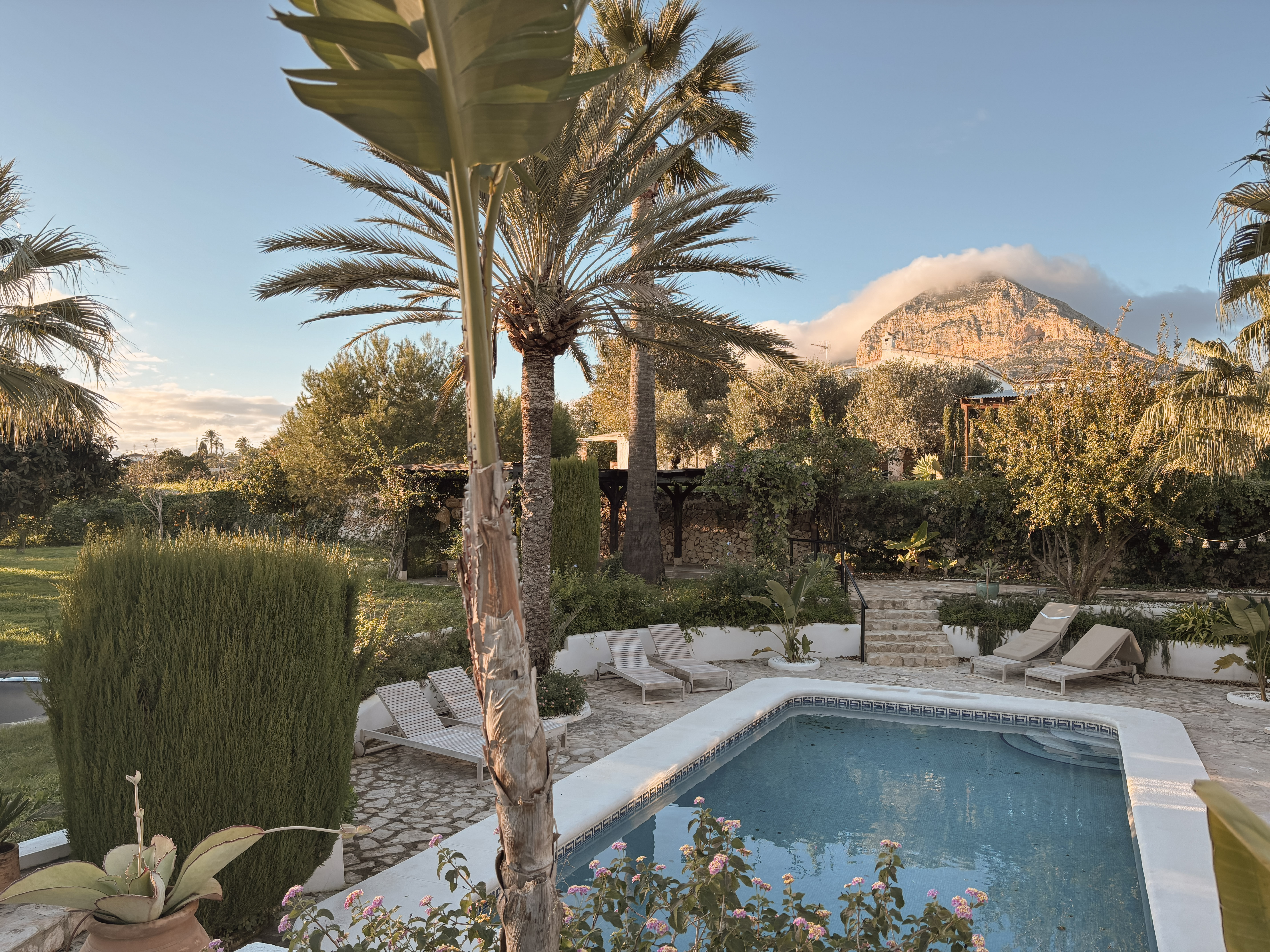 Een rustig huis op een groen perceel in Jávea/Xàbia. Licht, buitenleven, en ruimte om samen te zijn. Vier slaapkamers, vier badkamers. Geschikt tot 8 personen (optioneel 10).